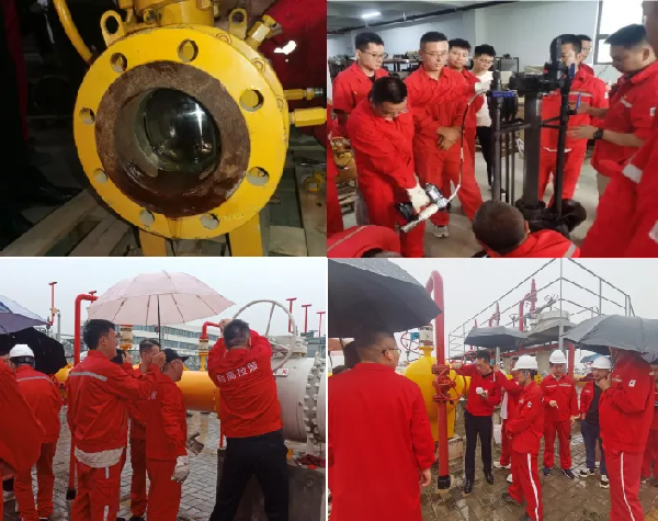 次日,培訓團隊前往北塬應急調峰輸配中心,圍繞“清潔—注脂—排污”三步流程進行現場教學。專家以運行與閑置閥門為實訓樣本,手把手演示操作流程,并開展實地互動教學,增強了參訓人員的實操能力。